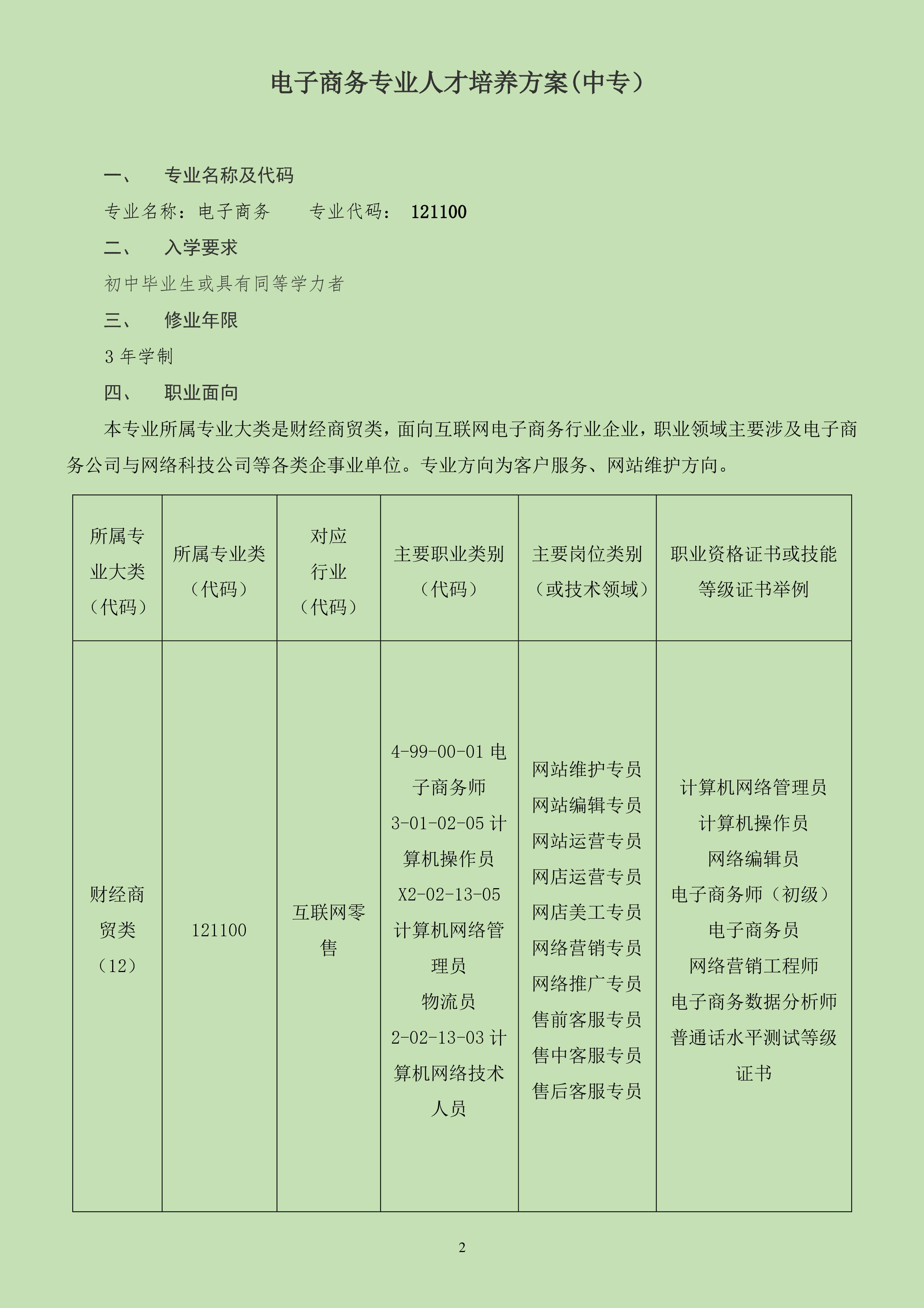 电子商务专业中专人才培养方案