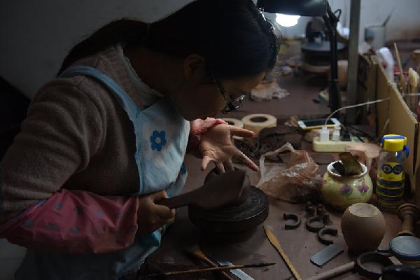 侯佳君老师、孙帅老师考察宜兴紫砂壶制作