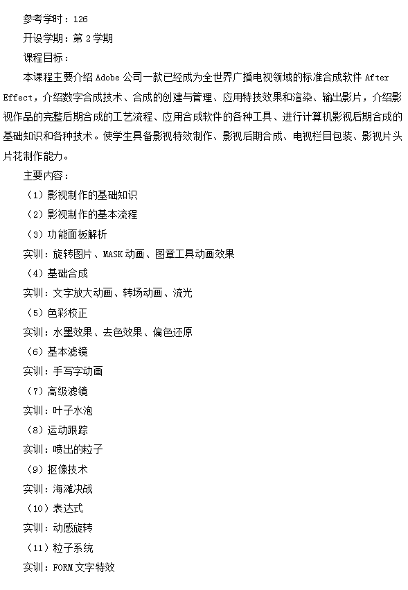 影视特技与后期合成教学计划