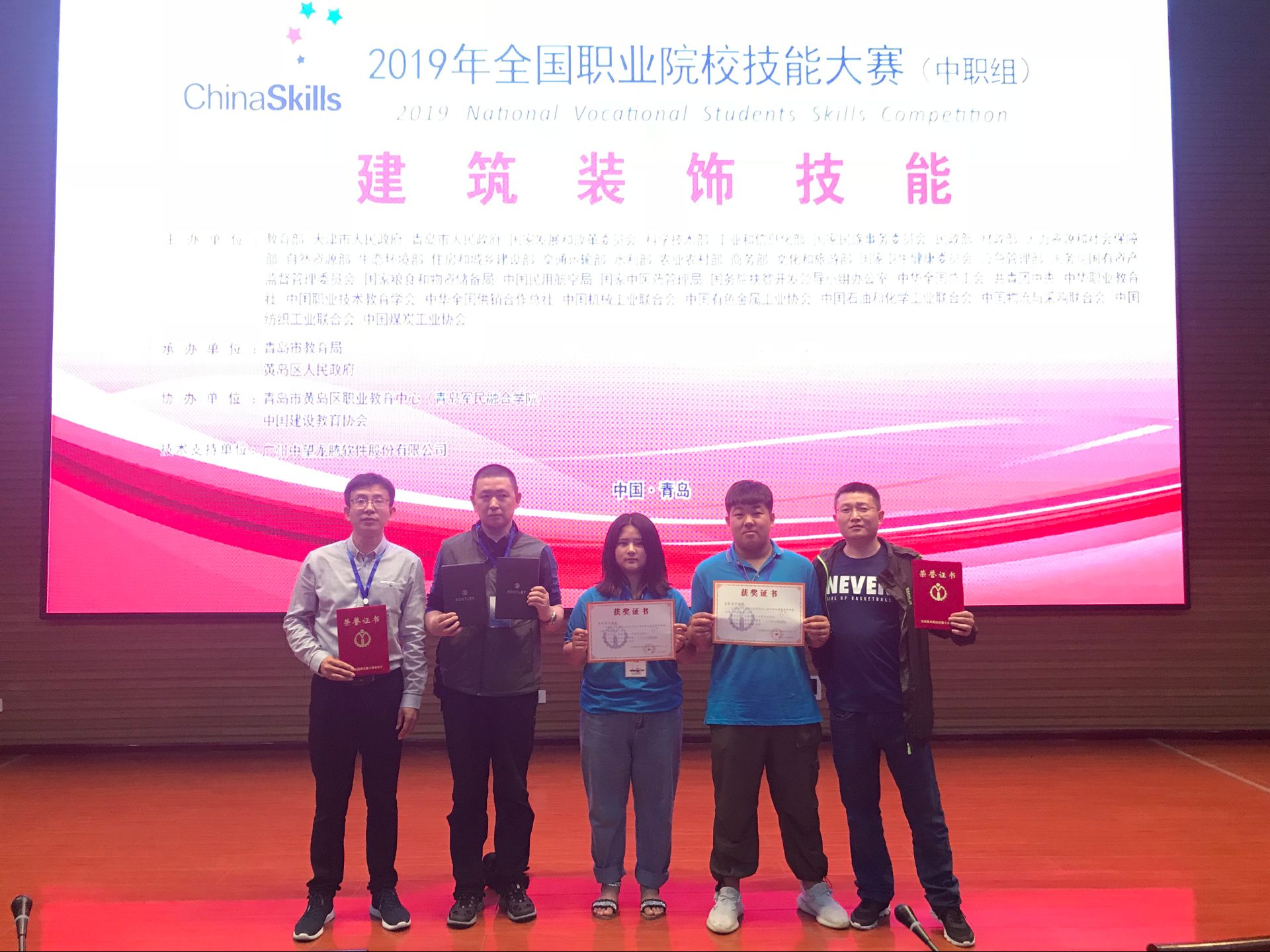 2019年全国中职学校建筑装饰大赛在青岛市黄岛区职业教育中心刚刚结束,来自全国各省市自治区90支队伍展开激烈角逐,我校由汤斌副校长领队,指导老师于洪波、祝新带领学生李冬雪、周奇参赛。经过8个小时紧张激烈的比赛,我校选手发挥出色取得了国赛二等奖的好成绩。这个成绩不仅展示了我校学生专业能力过硬,同时也体现了指导老师于洪波、祝新两位老师辛勤的付出。以赛促教、以赛促学、以赛促改,充分展示了一中专多年来的教育教学成果。