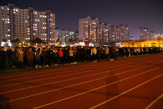 队伍整理完毕,安全科朴科长对这次夜间消防演练做总结讲话,他针对本次演练重点向同学们强调:这次演练活动,同学们学会了在面对突发灾害时,能够做到听从命令,服从指挥。整个演练过程快速、有序、安全,达到了预期目的和效果。
