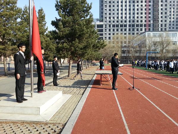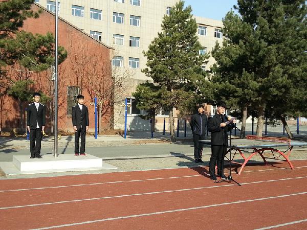 学生科张涛副科长主持升旗仪式(升旗班级15建2)