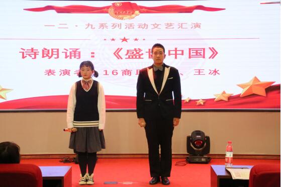 诗朗诵特等奖:16商助王磊、王冰同学的《盛世中国》