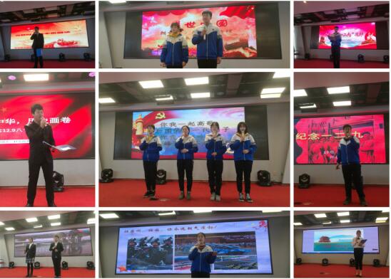 系列活动历时一个多月的初赛,有20多个各班级200多学生参与到活动中来。12月7日下午,在五楼会议室举行纪念一二.九运动83周年系列活动综合文艺汇演,活动由校团委书记胡经纬主持。