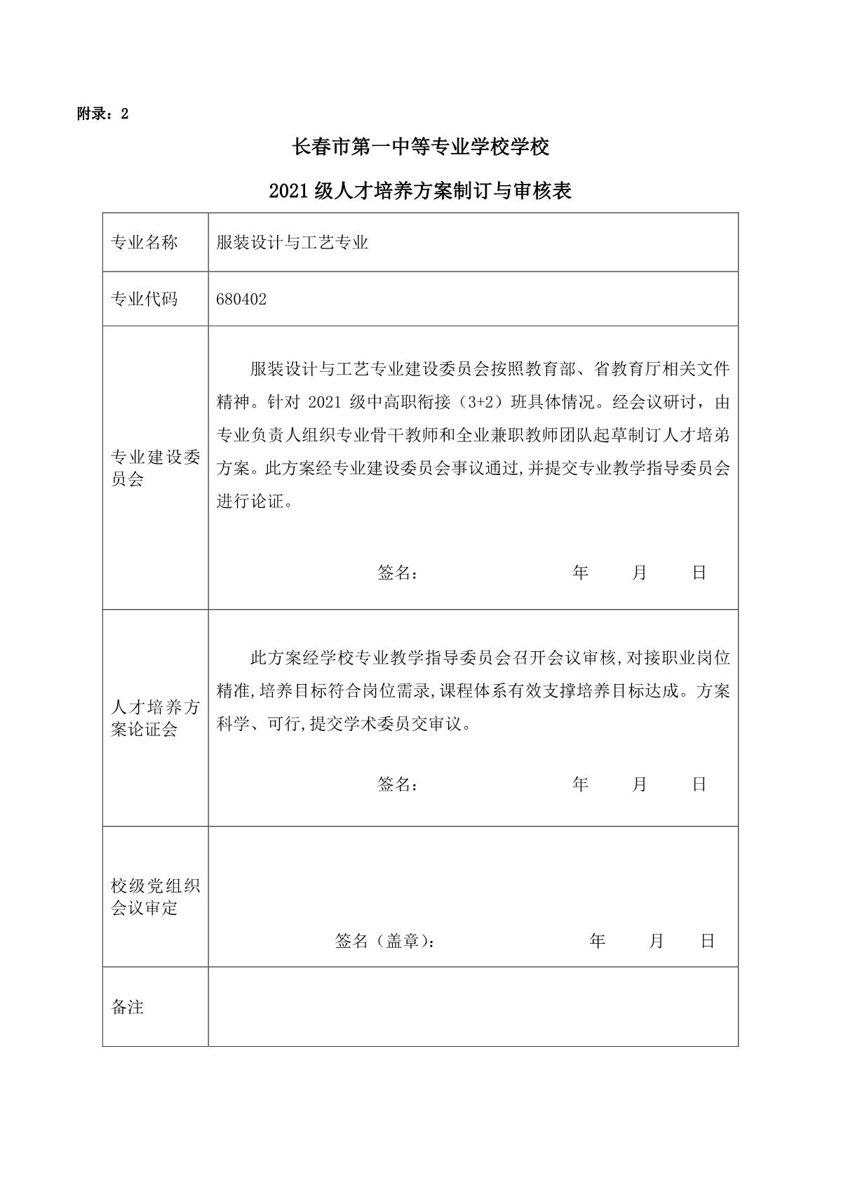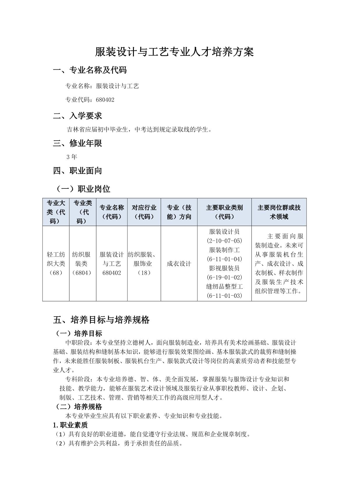 服装设计与工艺专业人才培养方案(中高职衔接3+2)