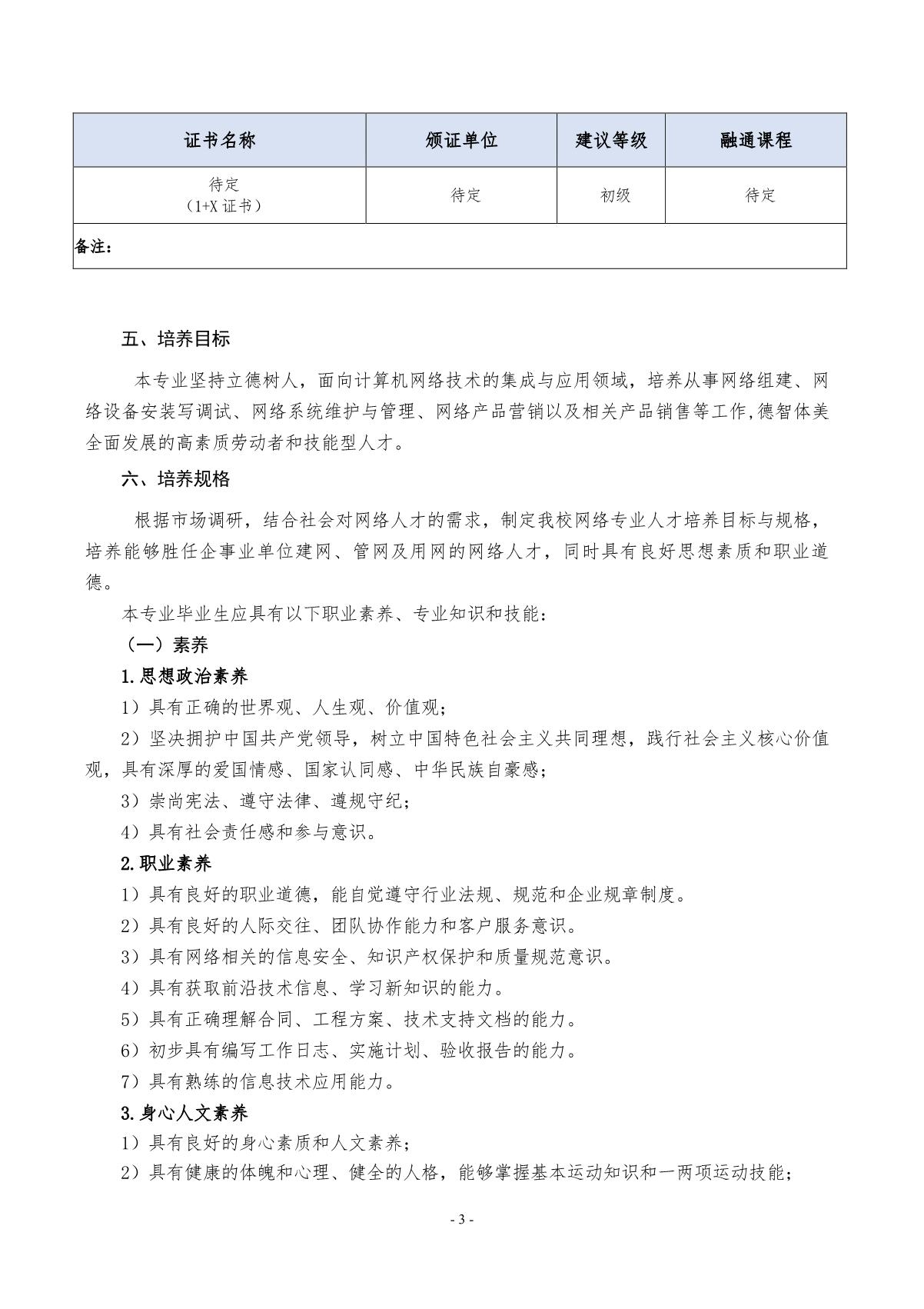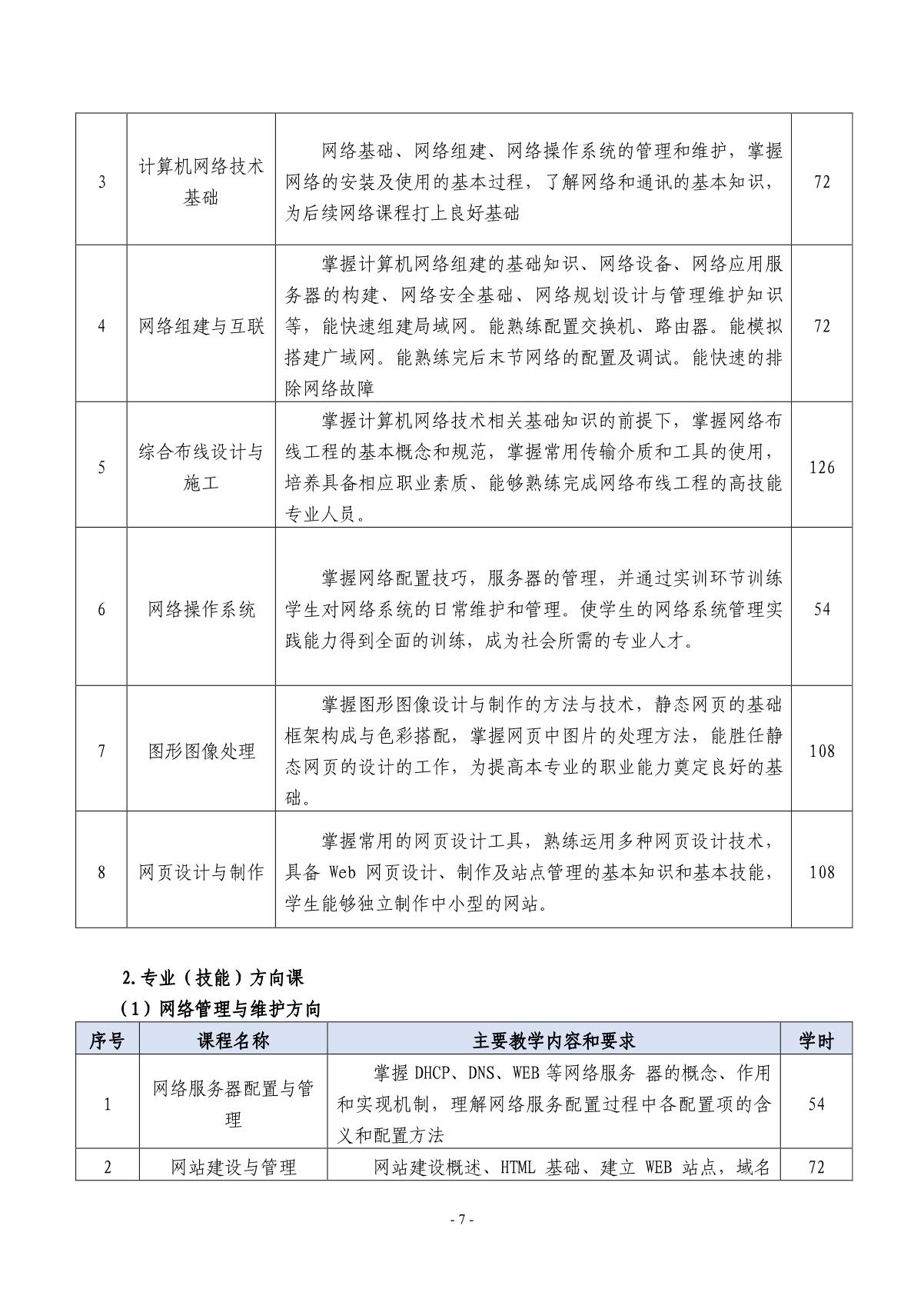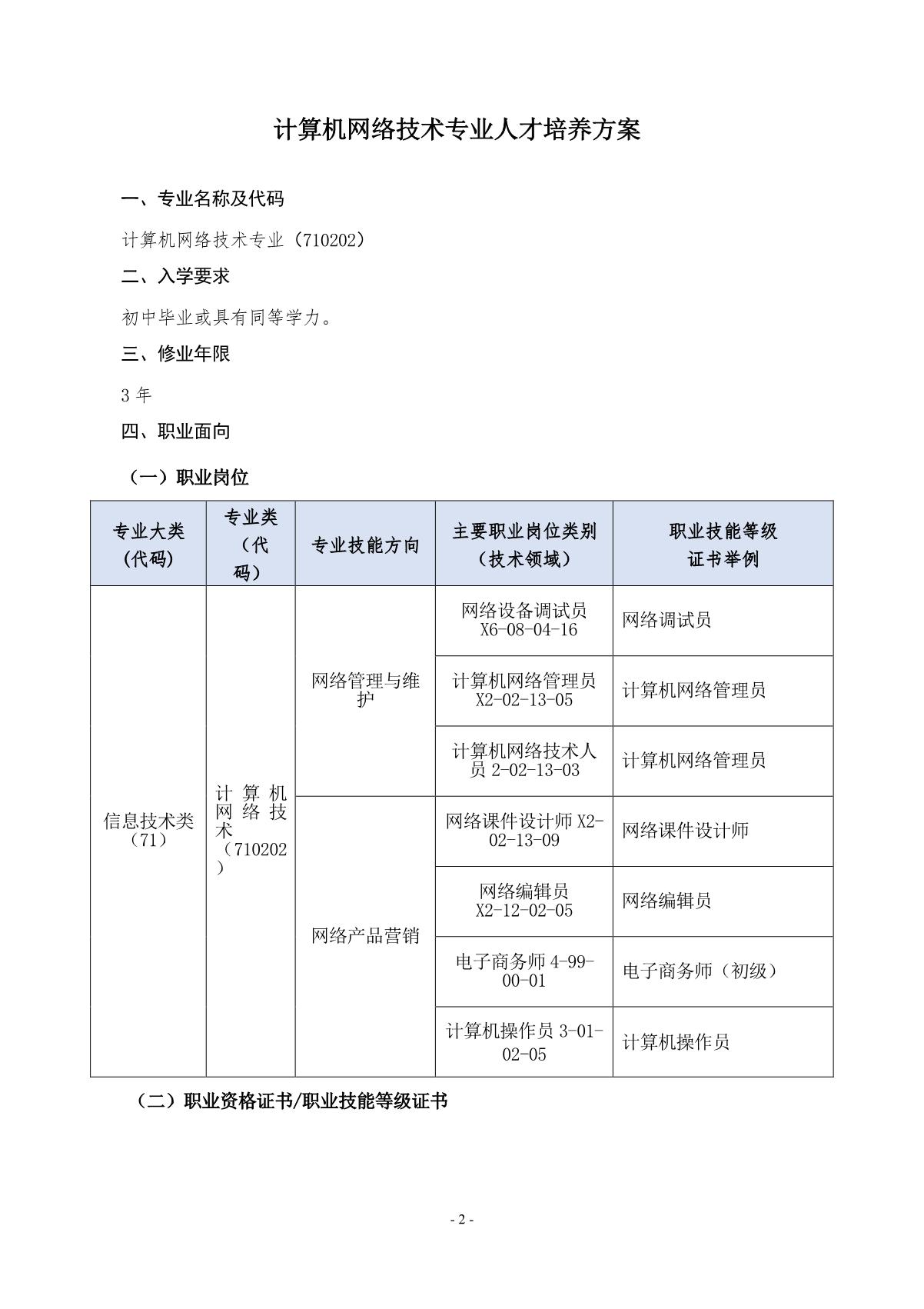 计算机网络技术专业中专人才培养方案