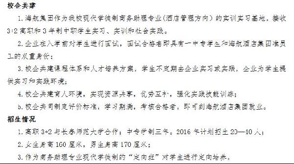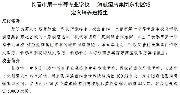 海航酒店集团东北区域,长春一中专定向培养班招生
