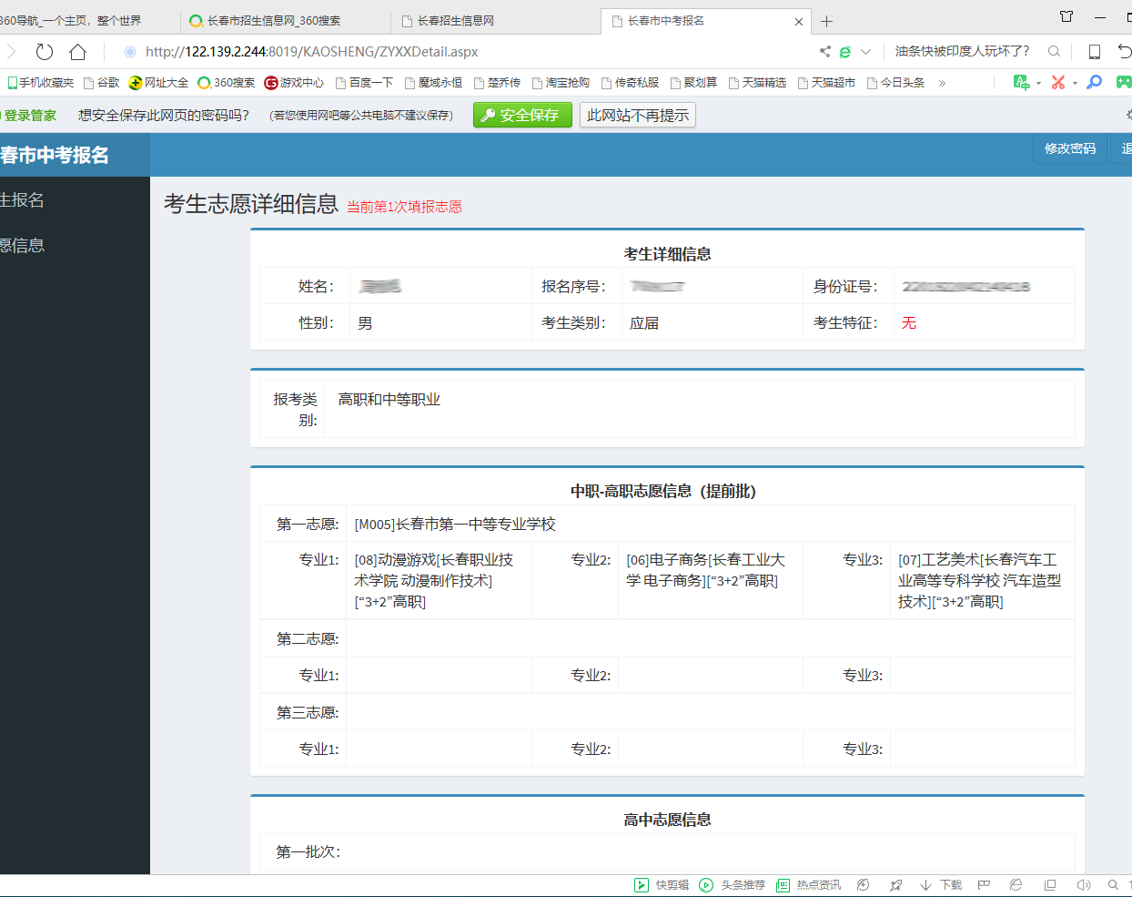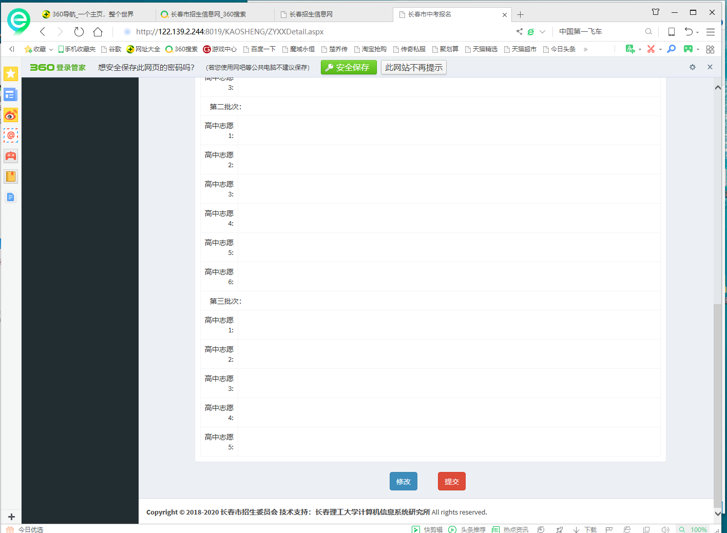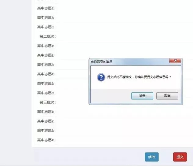 11.如果点击提交就不能再进行修改,检查无误再提交。提交后就完成整个中考志愿填报工作。