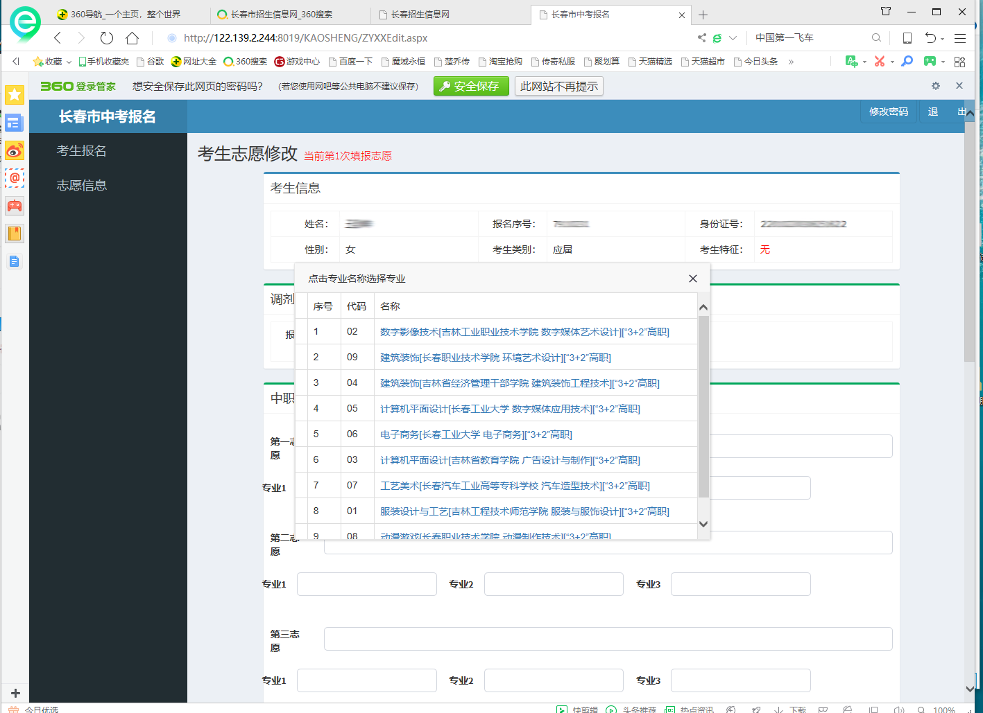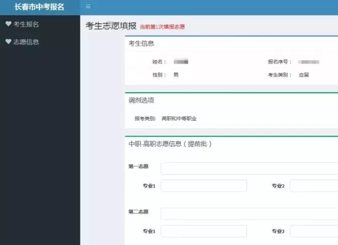 5.成功后出现以上界面,点击第一志愿栏,选择“长春市第一中等专业学校”。