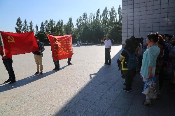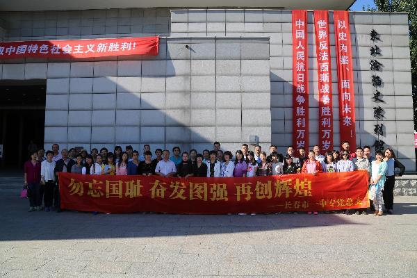 在东北沦陷史陈列馆前,全体党员面对党旗庄严宣誓,重温入党誓词。通过参观,全体党员民主党派教师深刻认识到伟大的抗战精神,升华了爱国主义为核心的民族精神,是我们中国人民弥足珍贵的精神财富,在实现中华民族伟大复兴中国梦的历史征程上,高扬爱国主义的伟大旗帜,大力弘扬民族精神和抗战精神。