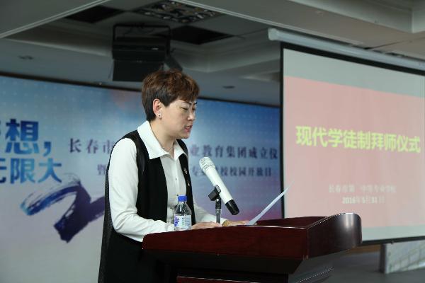 长春市第一中等专业学校2016年5月31日在学校的表演大厅庄严的举行了现代学徒制拜师仪式。长春今朝装饰公司、长春小雪婚纱公司、吉林省明度文化科技等企业的技师代表、学校全体领导班子以及建筑专业专业、美发与形象设计专业、动漫游戏专业的专业教师和学生代表参加了拜师仪式。大会由教学副校长汤斌主持,潘占宏校长和今朝装饰于迎春经理分别代表学校和企业作了发言,指出现代学徒制对职业教育人才培养和满足企业人才需求的重大意义和作用,并对师傅和学徒提出了要求和期望。吉林教育电台全程进行了采访和报导。