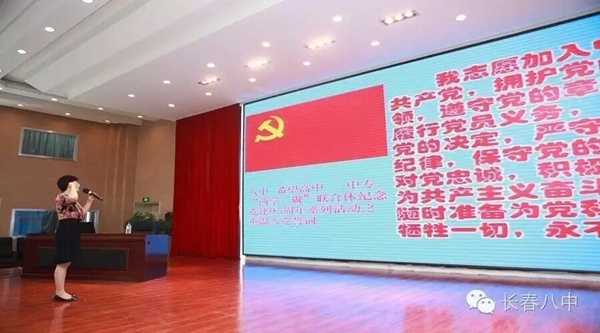 6月17日,为纪念建党95周年,结合开展“两学一做”教育实践活动,在“七一”前夕,八中、希望高中、一中专“两学一做”联合体,纪念建党95周年系列活动之重温入党誓词及专题党课,在第八中学五楼多功能厅举行。