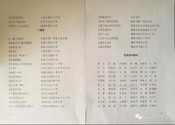 ——长春市一中专校园剧《一路上有你》获得“长春市中小学社会主义核心价值观校园剧”二等奖,徐婷、马聪、毕翠玉获得优秀指导教师光荣称号