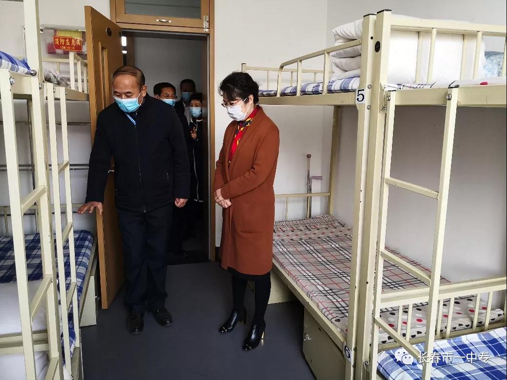 贾丽娜副市长一行来到学生宿舍,了解到疫情防控期间,针对学生宿舍管理工作,学校制定了详细的住宿生体温检测、消毒通风等细则,坚持每天进行2次消毒3次通风,6次体温检测,每次消毒均已表面湿润且无滴流现象为准。贾丽娜副市长非常高兴,表示学校准备工作考虑充分、抓实抓细,为开学复课做好宿舍疫情防控管理工作。