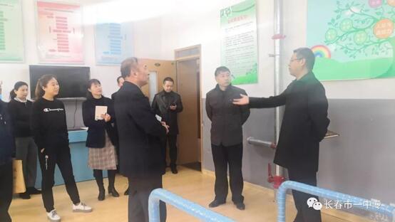 在李校长等领导班子的陪同下,局领导查看了心理咨询室、学生寝室、食堂等涉及校园安全工作的重点区域,现场办公,提出指导意见。