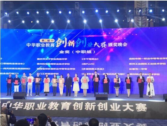 第二届中华职业教育创新创业大赛全国现场总决赛及产教融合、创新创业论坛研讨展示系列活动,于12月23日在福建省平潭综合实验区成功落幕,我校在比赛中获得一金一铜的好成绩。全国人大常务委员会陈昌智副委员长亲自为我校狄平和胡伟老师指导的《多层纸雕工艺品开发》项目颁发金奖奖杯和荣誉证书,徐婷和汤斌老师指导的《“袭予”萨满文化女装》在中职组决赛中荣获铜奖!同时我校获得“黄炎培职业教育奖”之“第二届中华职业教育创新创业大赛竞赛组织奖”。这是我校继2015年获得教育部组织的全国职业院校技能大赛建筑装饰国赛一等奖以来又一次国赛摘金!